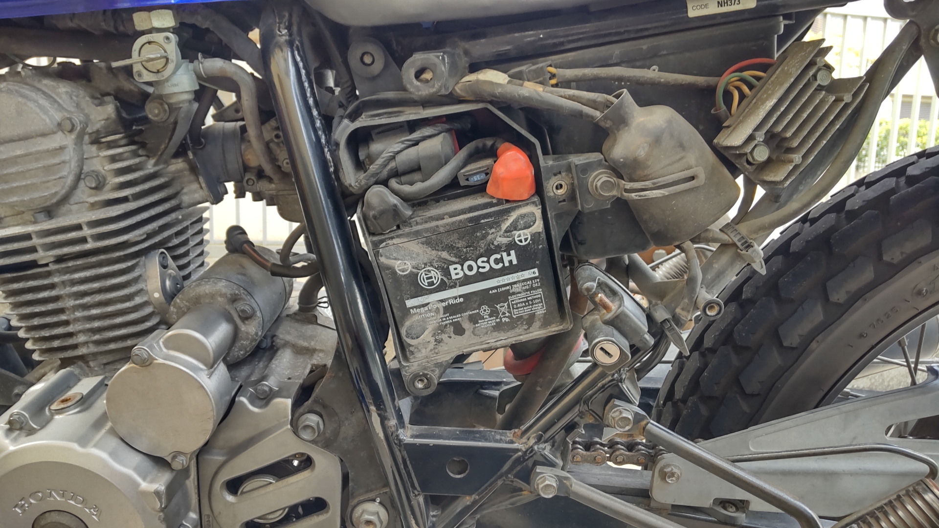 - 2025年12月セルモーターが回っているがすごい鈍い音で回っててエンジンが掛からなくなる押しがけすると掛かるので、電気系統(配線)はおそらく大丈夫と判断。原因はバッテリーがセルに絞り込む。